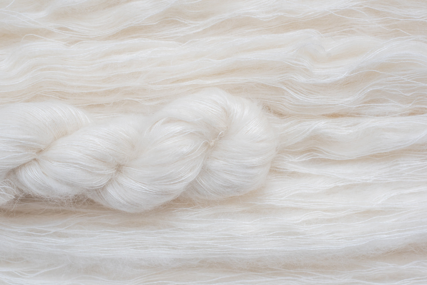 ・ 600m/50gMofu Mohairよりもソフトでシルキーなこのベースは、軽いハローとシルキーなタッチを提供します。レースや中細の毛糸との相性が良く、単独でも使用できます。