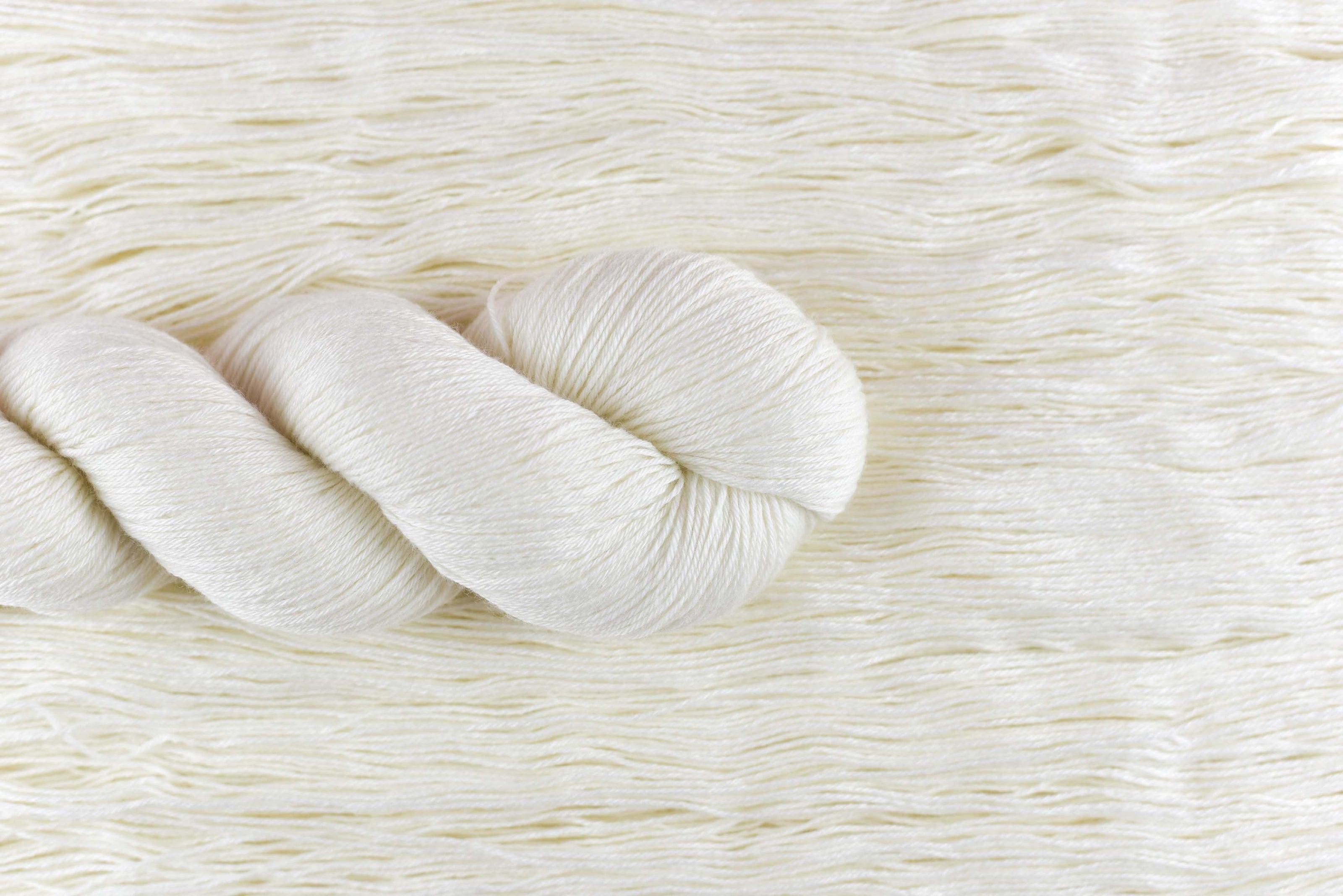 このベースは、柔らかさ、色の吸収、ステッチの定義においてASCAレースと非常に似ています。また、ややドレープ感が少ないです。それでも、肌に贅沢な感触で美しいショールを作ります。